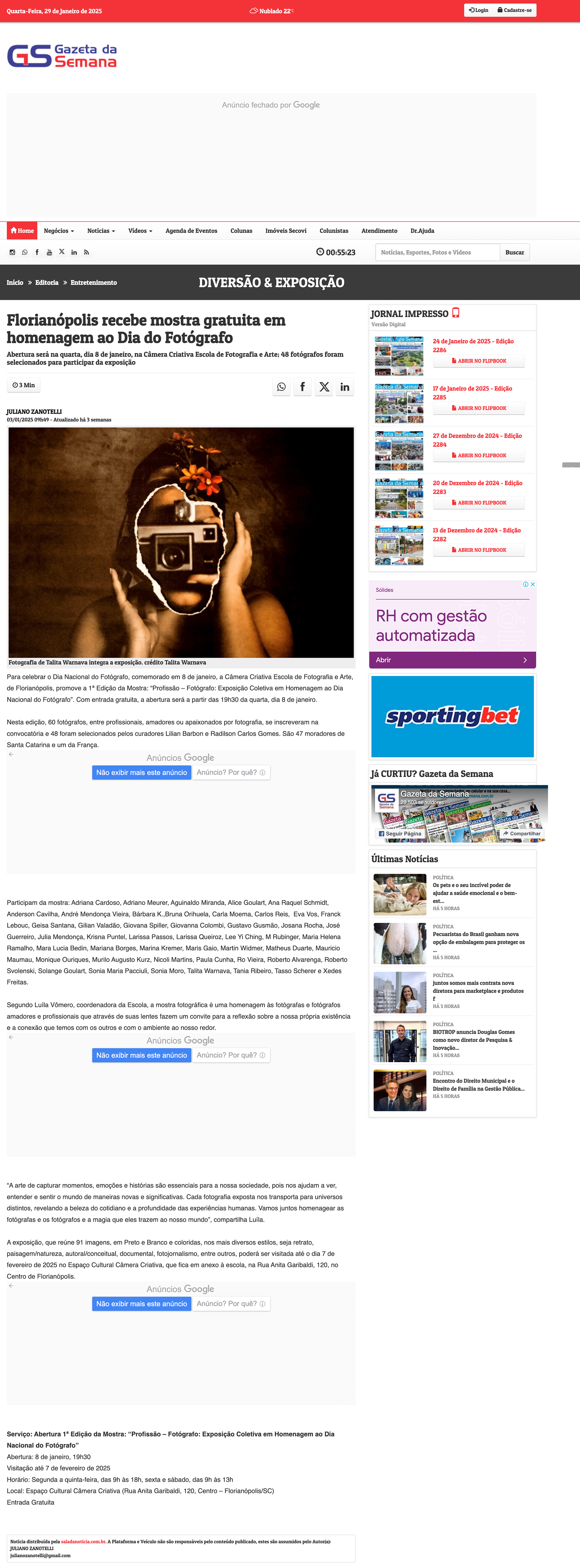 Media about the first Exhibition "Profession: Photographer" | 1a Mostra "Profissão: Fotógrafo"